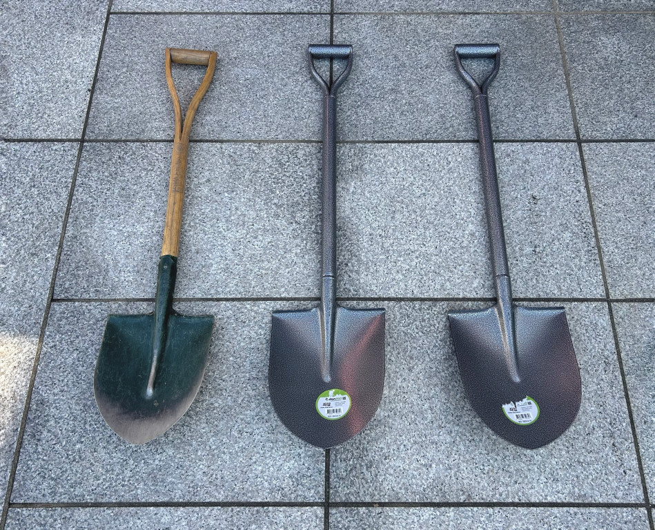 처음엔 손잡이가 나무로 된 삽이 다섯 개였습니다. 주로 정원을 가꾸는데 쓰였는데, 그동안 네 개를 부러뜨리고 하나만 위태롭게 남아 있었지요. 그래서 이번에는 쇠로 된 삽을 구매했습니다. 오늘, 택배로 받았는데, 손에 들어 보니 묵직한 단단함이 느껴졌습니다. 사용하던 나무 삽이 초라해 보이네요.. - 쇠 삽도 잘못 사용하면 부러진다고 합니다. 그러나 나무 삽보다는 튼튼할 테니, 오래오래 잘 사용하렵니다. 정원을 가꾸는데, 든든한 일꾼 둘이 생긴 것 같습니다.
